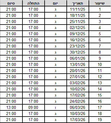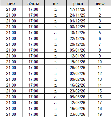 מקצועית א' - ימים ג'+ו' (תל אביב) - קבוצה סגורה ניתן להירשם לרשימת המתנה